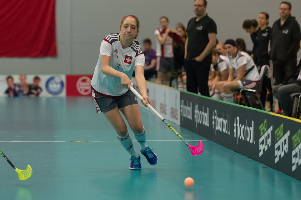 Janine Wuethrich (3, Schweiz), waehrend dem Guppenspiel Schweiz gegen Polen, Unihockey Weltmeisterschaft der Damen 2015, 4. Dezember 2015, Tampere Areena, in Tampere, Finnland (imagepower.ch/Fabian Trees)
