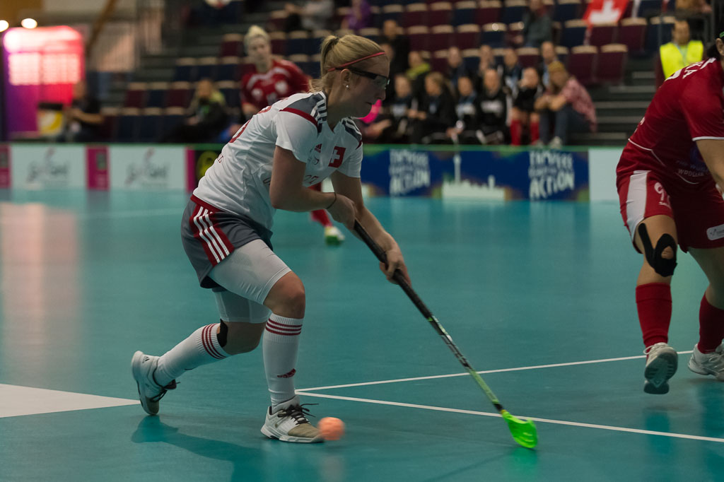 Manuela Dominioni (Schweiz) verpasst aus naechste Naehe, waehrend dem Guppenspiel Schweiz gegen Polen, Unihockey Weltmeisterschaft der Damen 2015, 4. Dezember 2015, Tampere Areena, in Tampere, Finnland (swiss unihockey/Fabian Trees)