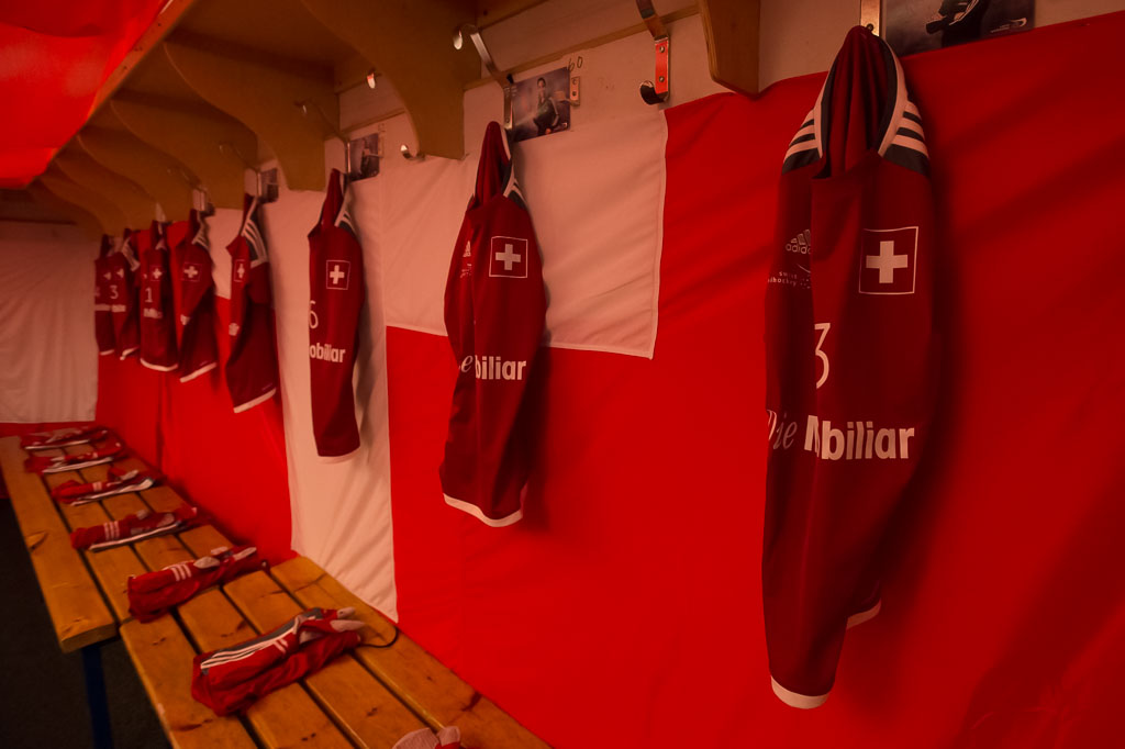 Garderobe, Guppenspiel Schweiz gegen Finnland, Unihockey Weltmeisterschaft der Damen 2015, 5. Dezember 2015, Hakametsae Eishalle, in Tampere, Finnland (www.imagepower.ch / Fabian Trees)