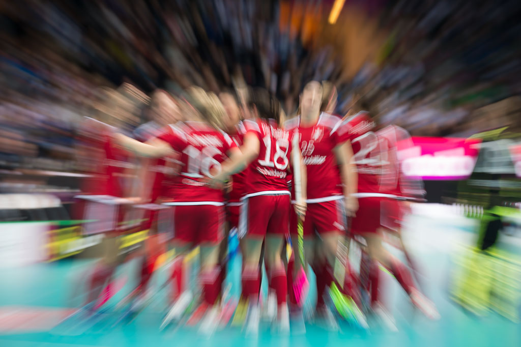 Schweizer Jubel, Gruppenspiel Schweiz gegen Finnland, Unihockey Weltmeisterschaft der Damen 2015, 5. Dezember 2015, Hakametsae Eishalle, in Tampere, Finnland (www.imagepower.ch / Fabian Trees)