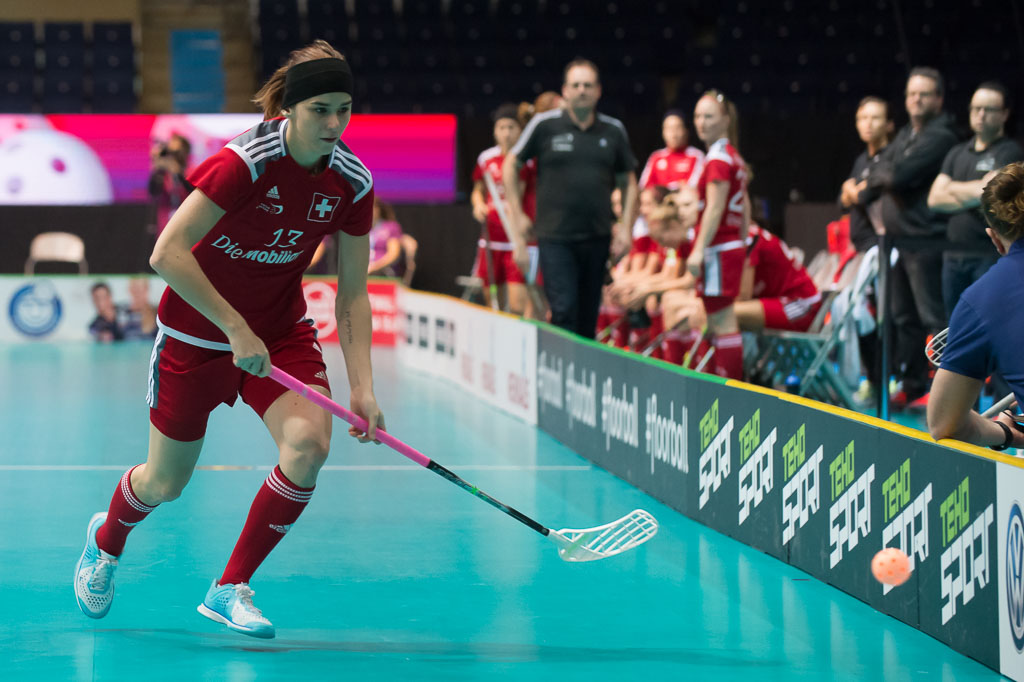 Sonja Putzi (13, Schweiz), Gruppenspiel Schweiz gegen Norwegen, Unihockey Weltmeisterschaft der Damen 2015, 6. Dezember 2015, Hakametsae Eishalle, in Tampere, Finnland (www.imagepower.ch / Fabian Trees)