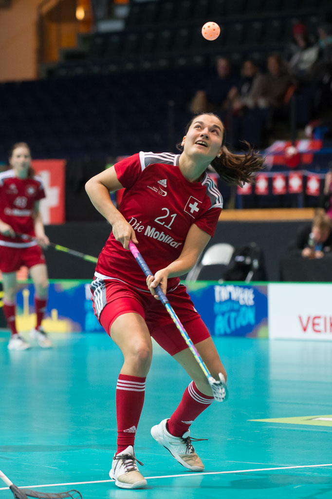 Corin Ruettimann (21, Schweiz), Gruppenspiel Schweiz gegen Norwegen, Unihockey Weltmeisterschaft der Damen 2015, 6. Dezember 2015, Hakametsae Eishalle, in Tampere, Finnland (www.imagepower.ch / Fabian Trees)