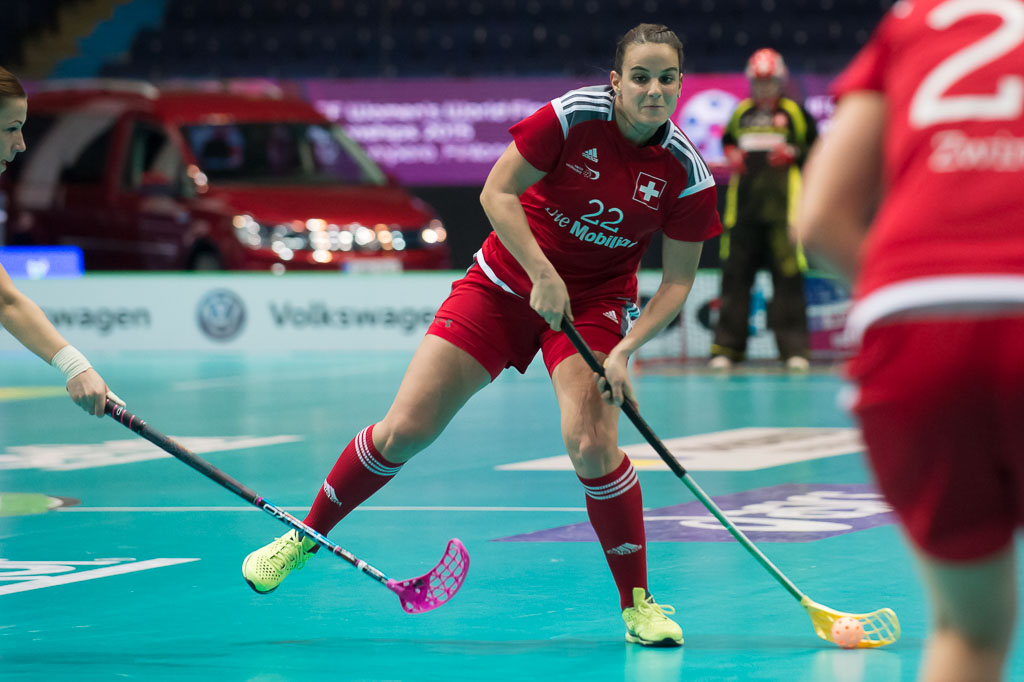 Seraina Ulber (22, Schweiz), Viertelfinal Schweiz gegen Lettland, Unihockey Weltmeisterschaft der Damen 2015, 9. Dezember 2015, Hakametsae Eishalle, in Tampere, Finnland (www.imagepower.ch / Fabian Trees)