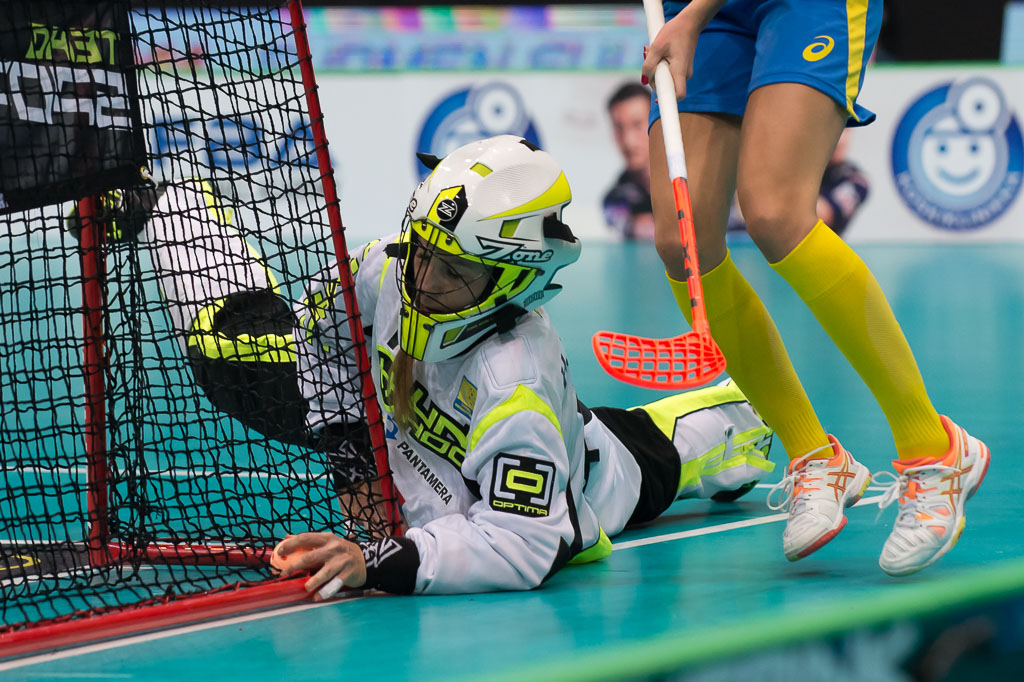 Sara Hjorting (1, Schweden), Halbfinal Schweden gegen Schweiz, Unihockey Weltmeisterschaft der Damen 2015, 11. Dezember 2015, Hakametsae Eishalle, in Tampere, Finnland (www.imagepower.ch / Fabian Trees)