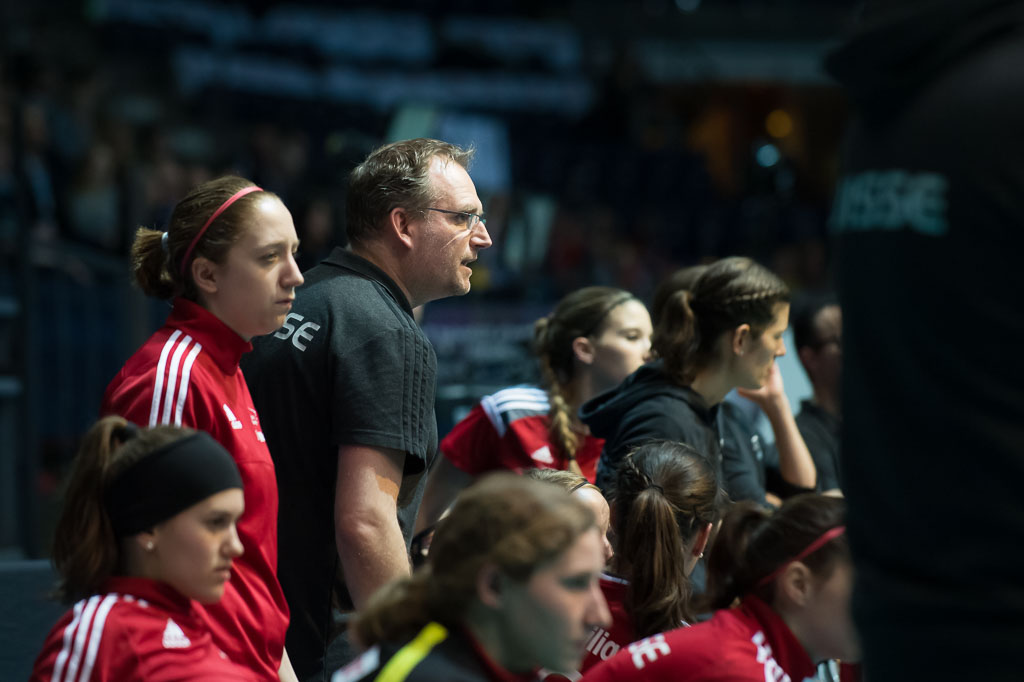 Sascha Brendler (Cheftrainer, Schweiz), Janine Wuethrich (links, Schweiz) Halbfinal Schweden gegen Schweiz, Unihockey Weltmeisterschaft der Damen 2015, 11. Dezember 2015, Hakametsae Eishalle, in Tampere, Finnland (www.imagepower.ch / Fabian Trees)