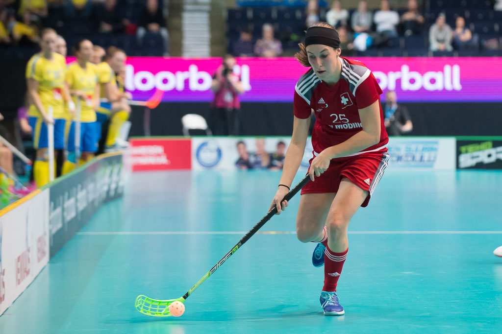 Katrin Zwinggi (25, Schweiz), Halbfinal Schweden gegen Schweiz, Unihockey Weltmeisterschaft der Damen 2015, 11. Dezember 2015, Hakametsae Eishalle, in Tampere, Finnland (www.imagepower.ch / Fabian Trees)