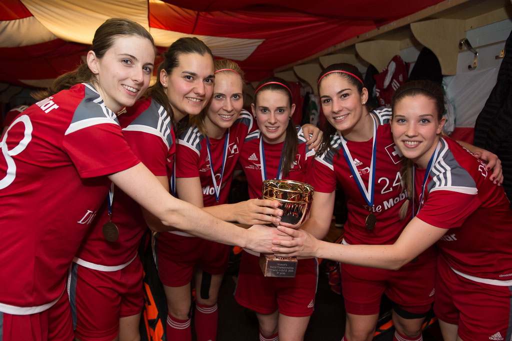 Priska von Rickenbach (48, Schweiz), Corin Ruettimann (21, Schweiz), Michelle Wiki (6, Schweiz) Nina Baertschi (11, Schweiz) Flurina Marti (24, Schweiz) und Lena Cina (4, Schweiz), Bronzespiel Schweiz gegen Tschechien, Unihockey Weltmeisterschaft der Damen 2015, 13. Dezember 2015, Hakametsae Eishalle, in Tampere, Finnland (www.imagepower.ch / Fabian Trees)